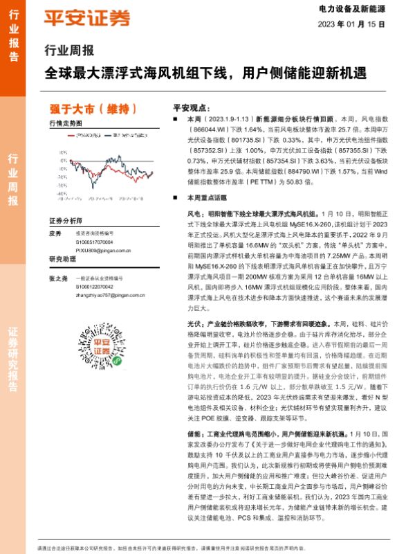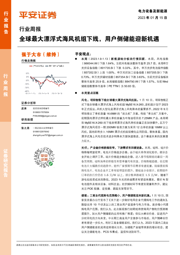 【平安证券】【20230115】20230115-平安证券-电力设备及新能源行业周报:全球最大漂浮式海风机组下线,用户侧储能迎新机遇-24页