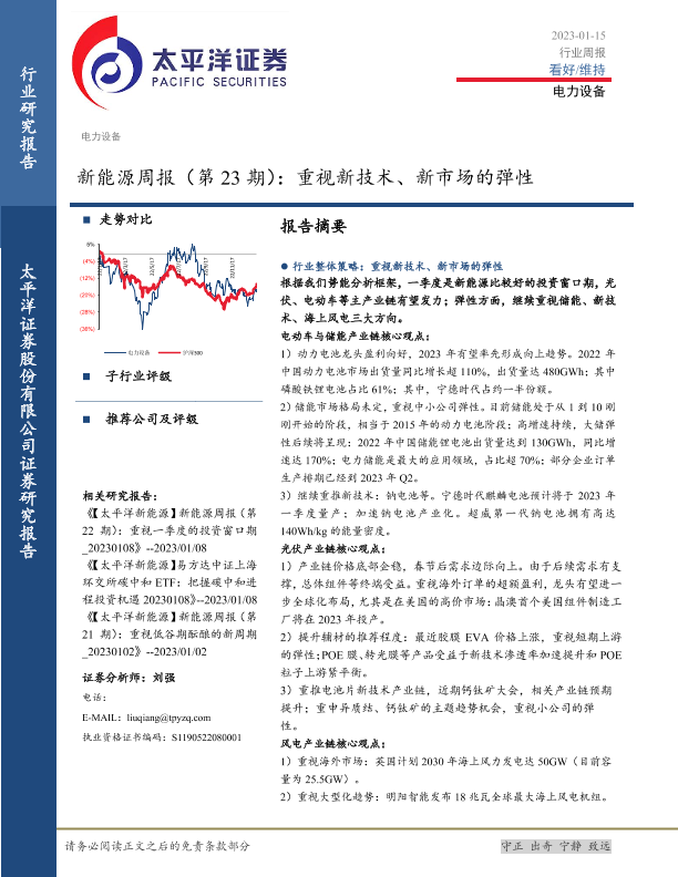 【太平洋证券】【20230115】20230115-太平洋-新能源周报(第23期):重视新技术、新市场的弹性-33页