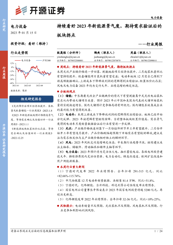 【开源证券】【20230115】20230115-开源证券-电力设备行业周报:持续看好2023年新能源景气度,期待需求验证后的板块拐点-24页
