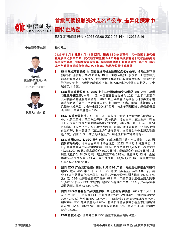 【中信证券】【20220816】ESG定期跟踪报告:首批气候投融资试点名单公布,差异化探索中国特色路径-16页
