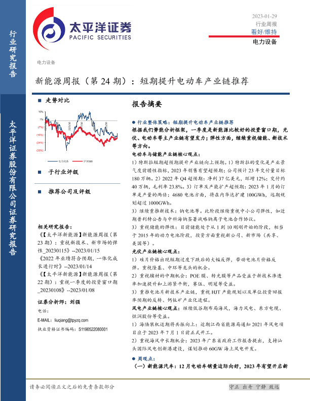 【太平洋证券】【20230129】20230129-太平洋-新能源周报(第24期):短期提升电动车产业链推荐-34页