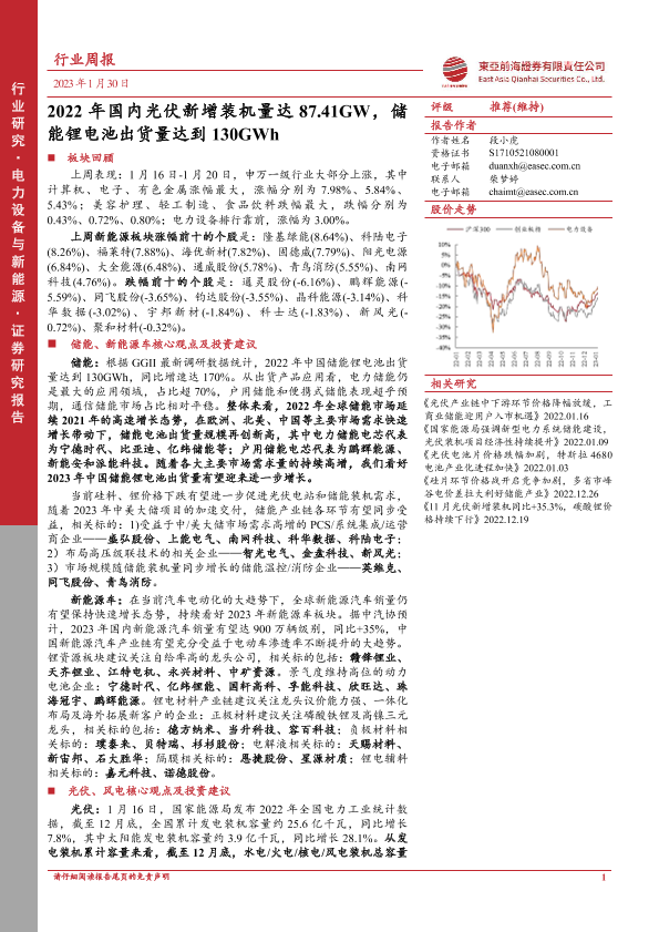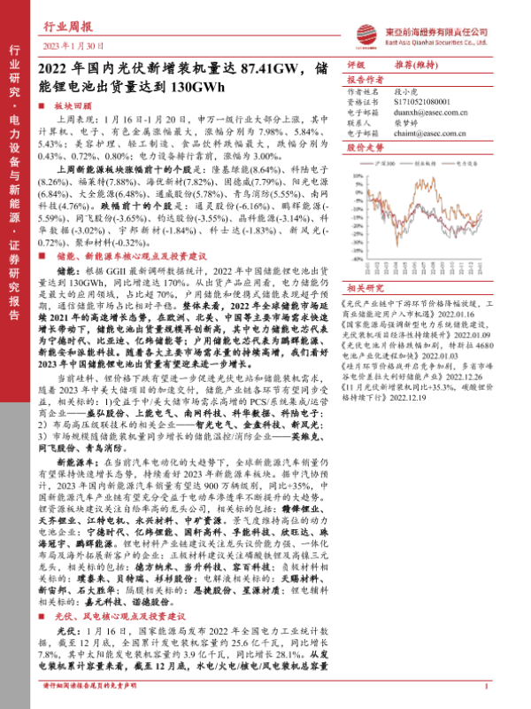 【东亚前海证券】【20230130】2023年1月30日电力设备与新能源行业周报-25页