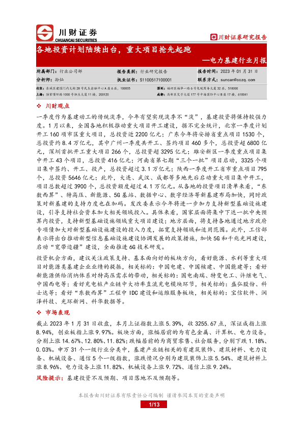 【川财证券】【20230131】电力基建行业月报:各地投资计划陆续出台,重大项目抢先起跑-13页