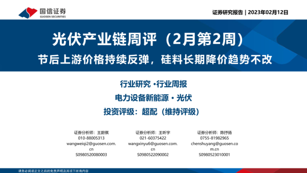 【国信证券】【20230212】光伏产业链周评(2月第2周):节后上游价格持续反弹,硅料长期降价趋势不改-13页