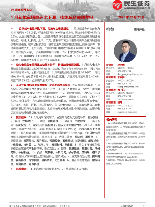 【民生证券】【20230221】EV观察系列132-1月新能车销量环比下滑,传统车企表现坚挺-20页