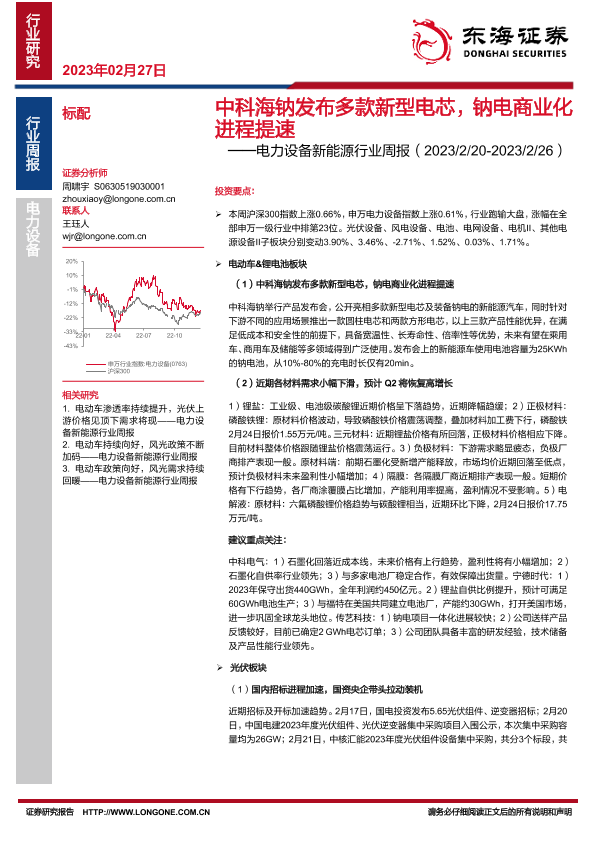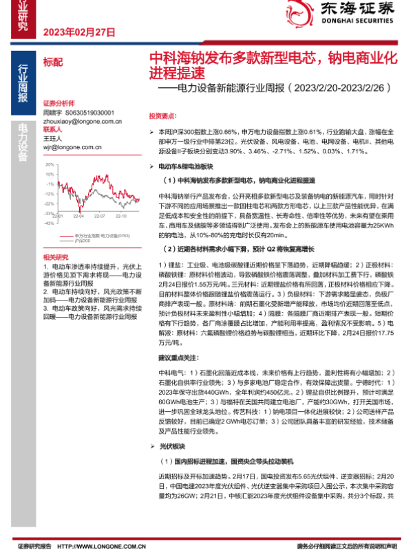 【东海证券】【20230227】20230227-东海证券-电力设备新能源行业周报:中科海钠发布多款新型电芯,钠电商业化进程提速-31页