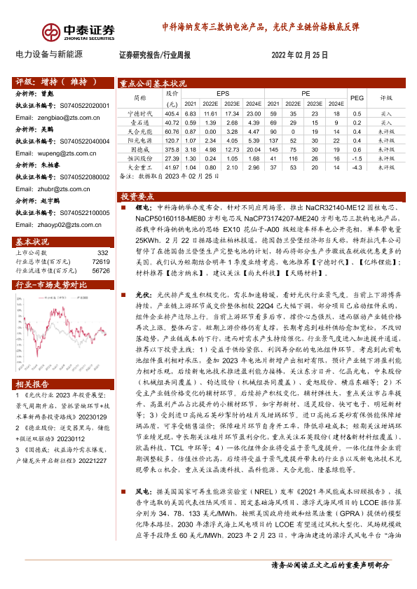 【中泰证券】【20230225】中泰证券-电力设备与新能源行业周报:中科海纳发布三款钠电池产品,光伏产业链价格触底反弹-26页
