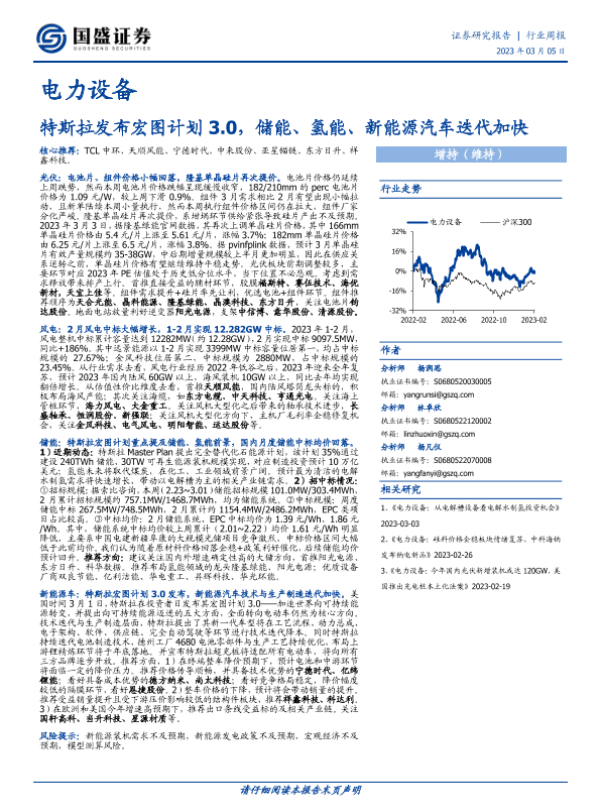 【国盛证券】【20230305】电力设备行业周报:特斯拉发布宏图计划3.0,储能、氢能、新能源汽车迭代加快-20页