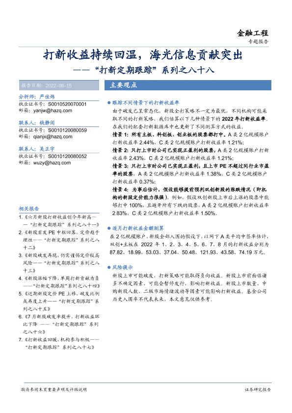 【华安证券】【20220815】“打新定期跟踪”系列之八十八:打新收益持续回温,海光信息贡献突出-22页