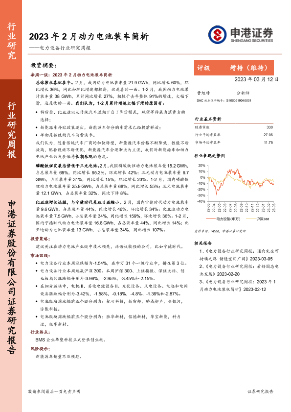 【申港证券】【20230312】2023年2月动力电池装车简析-11页