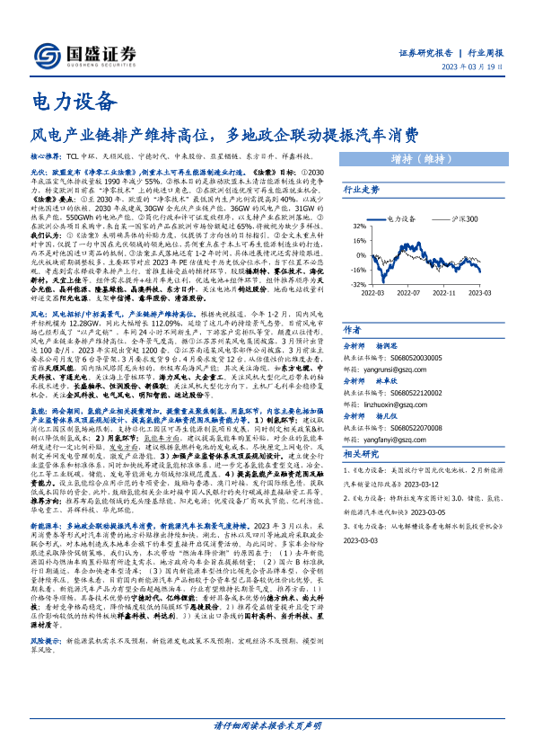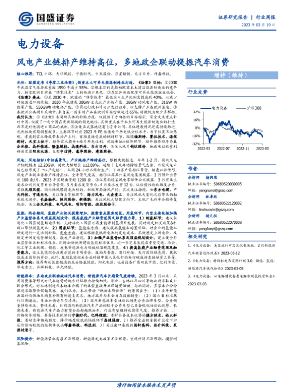 【国盛证券】【20230319】电力设备行业周报:风电产业链排产维持高位,多地政企联动提振汽车消费-19页