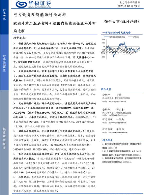 【华福证券】【20230319】电力设备及新能源行业周报:欧洲净零工业法案将加速国内新能源企业海外布局进程-12页