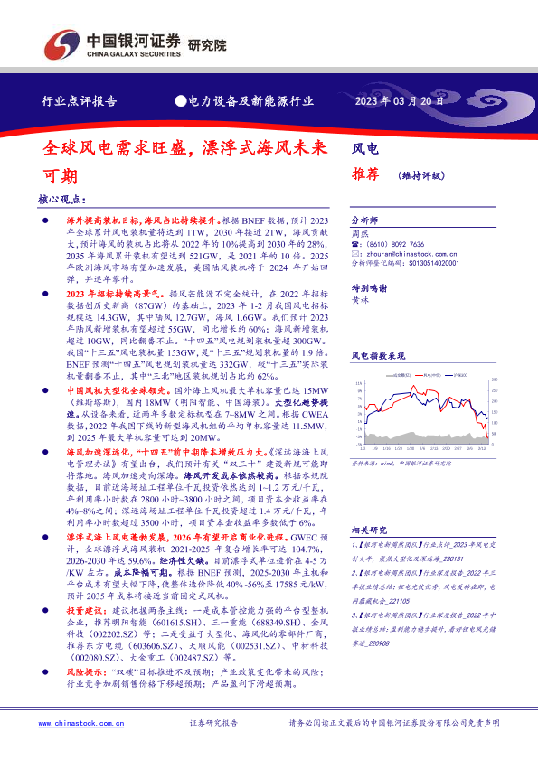 【银河证券】【20230320】全球风电需求旺盛,漂浮式海风未来可期-10页