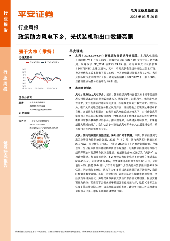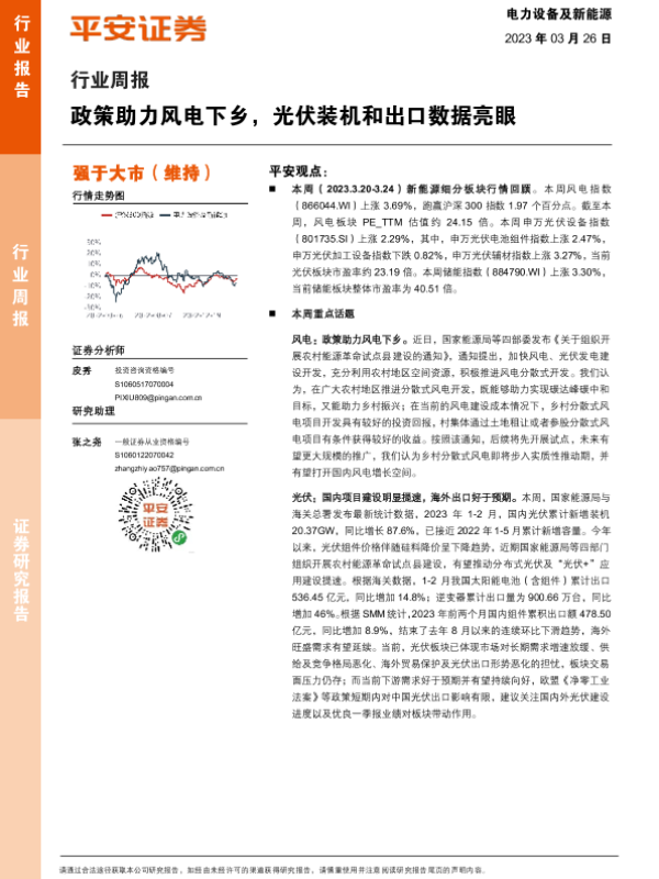 【平安证券】【20230326】电力设备及新能源行业周报:政策助力风电下乡,光伏装机和出口数据亮眼-22页