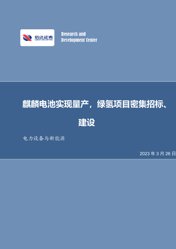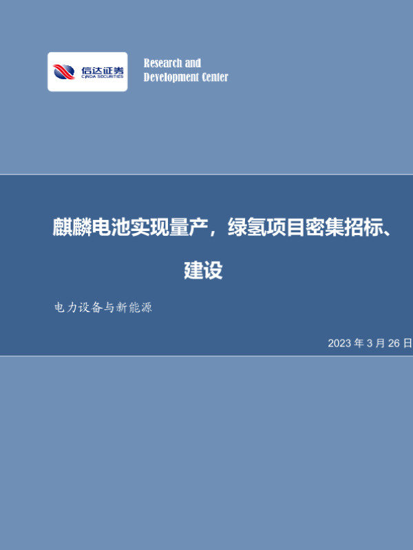 【信达证券】【20230326】电力设备与新能源行业周报:麒麟电池实现量产,绿氢项目密集招标、建设-12页