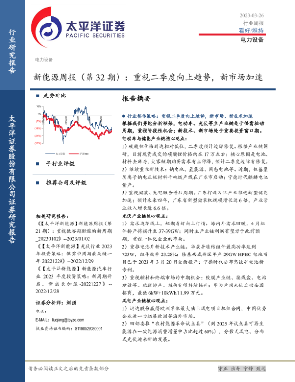 【太平洋证券】【20230326】20230326-太平洋-新能源周报(第32期):重视二季度向上趋势,新市场加速-34页