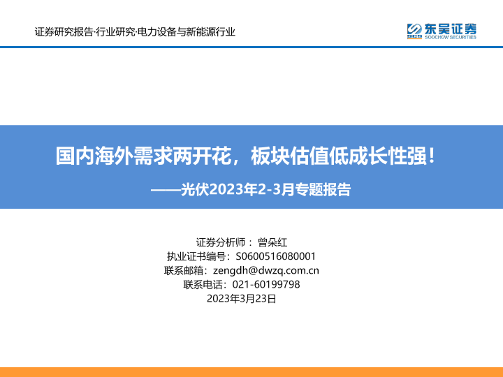 【东吴证券】【20230323】光伏2023年2-3月专题报告:国内海外需求两开花,板块估值低成长性强!-87页