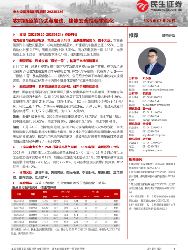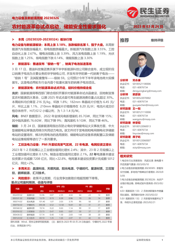 【民生证券】【20230326】电力设备及新能源周报:农村能源革命试点启动,储能安全性要求强化-26页