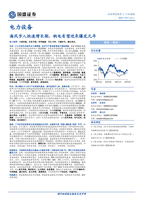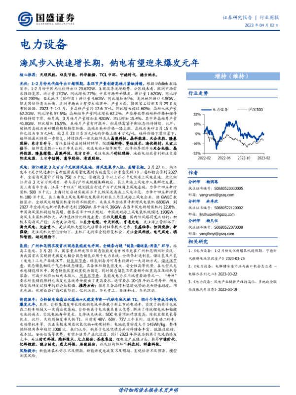 【国盛证券】【20230402】电力设备行业周报:海风步入快速增长期,钠电有望迎来爆发元年-22页