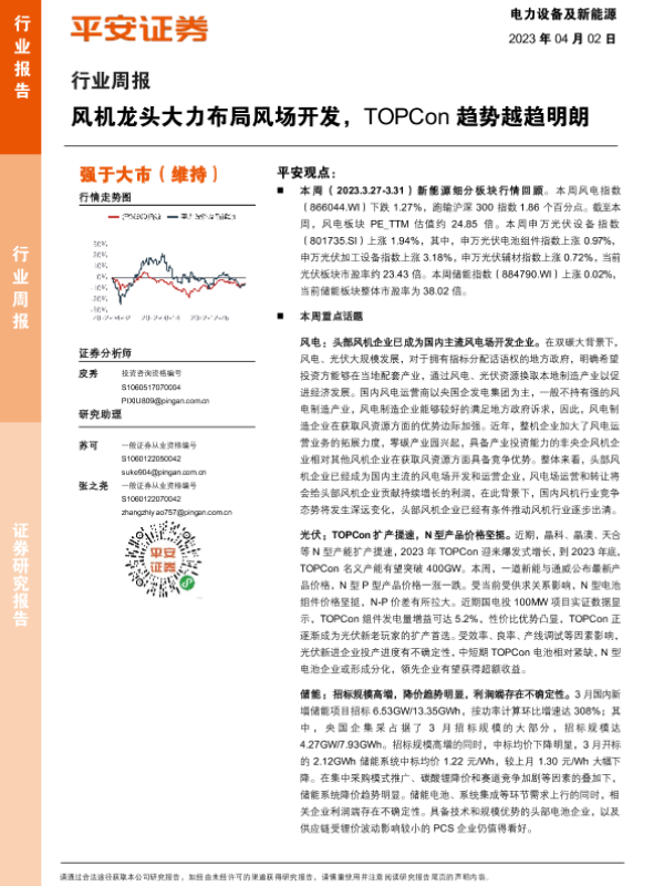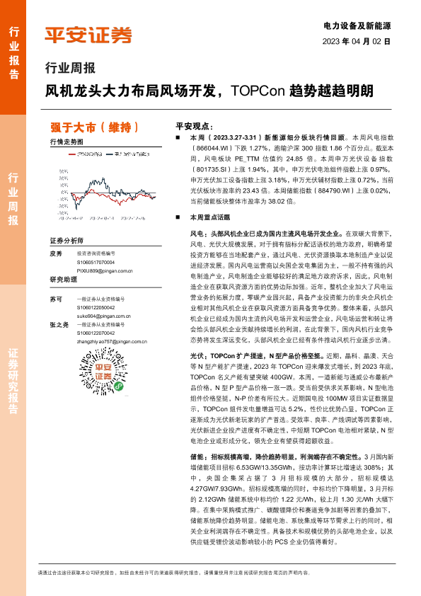 【平安证券】【20230402】电力设备及新能源行业周报:风机龙头大力布局风场开发,TOPCon趋势越趋明朗-25页