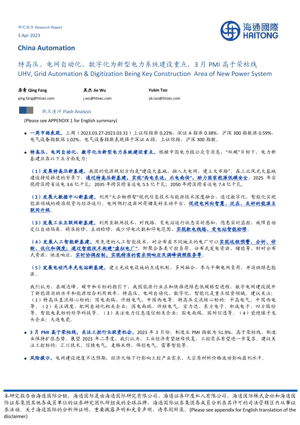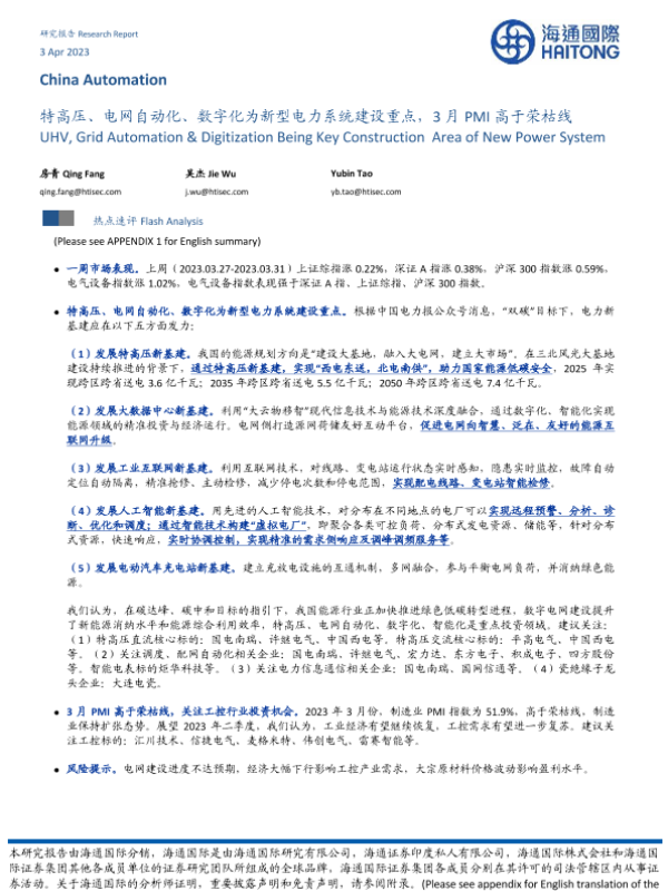 【海通国际】【20230403】特高压、电网自动化、数字化为新型电力系统建设重点,3月PMI高于荣枯线-10页