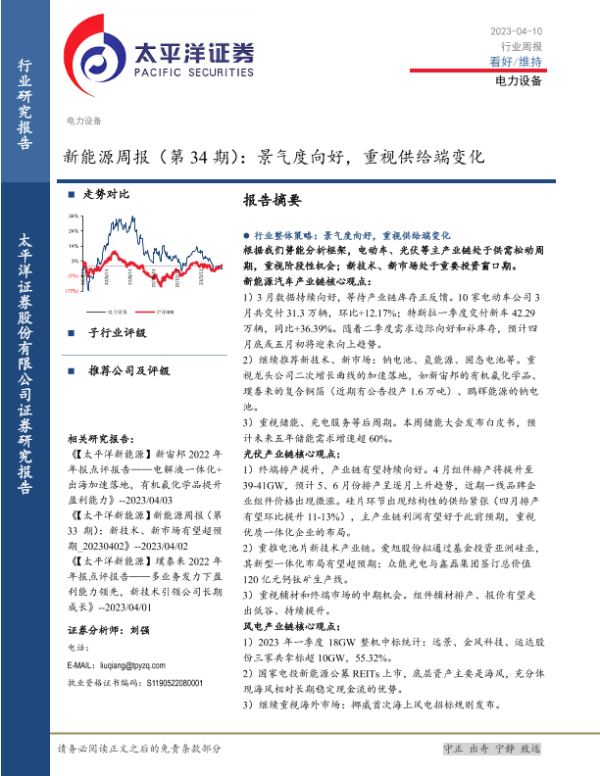 【太平洋证券】【20230410】20230410-太平洋-新能源周报(第34期):景气度向好,重视供给端变化-35页
