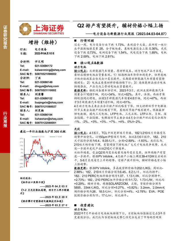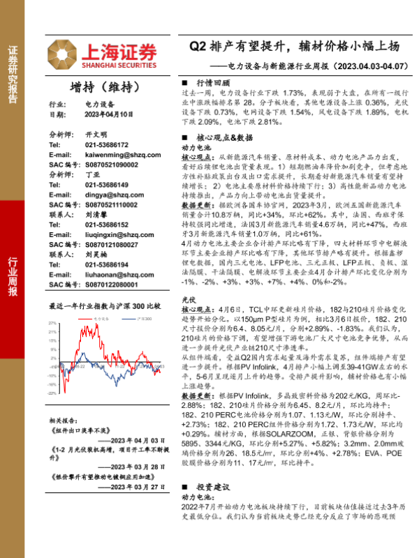 【上海证券】【20230410】电力设备与新能源行业周报:Q2排产有望提升,辅材价格小幅上扬-25页
