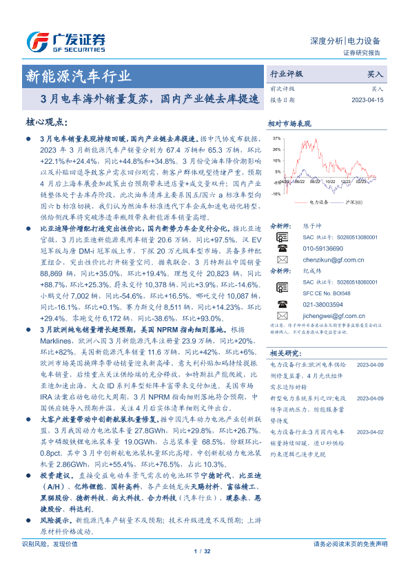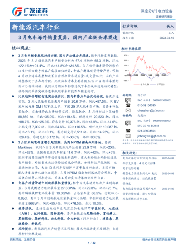 【广发证券】【20230415】20230415-广发证券-新能源汽车行业深度分析:3月电车海外销量复苏,国内产业链去库提速-32页