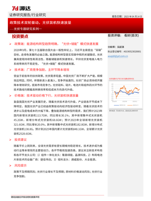 【源达信息】【20230414】20230414-源达信息-光伏专题研究系列一:政策技术双轮驱动,光伏装机快速放量-18页