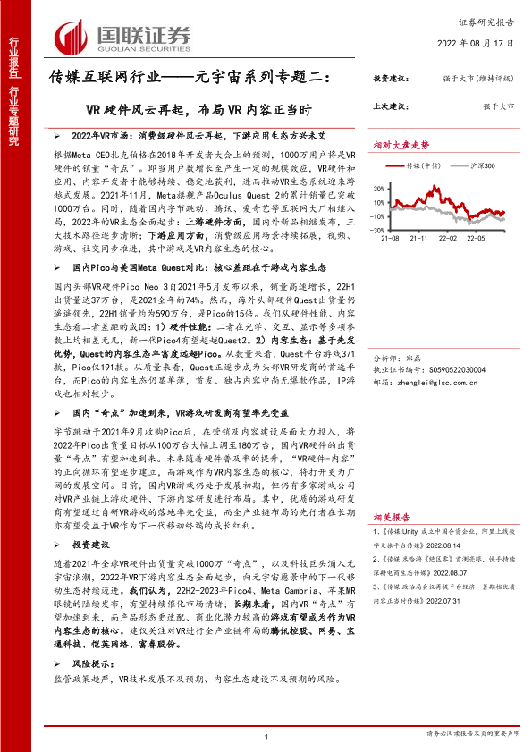 【国联证券】【20220817】传媒互联网行业:元宇宙系列专题二,VR硬件风云再起,布局VR内容正当时-21页