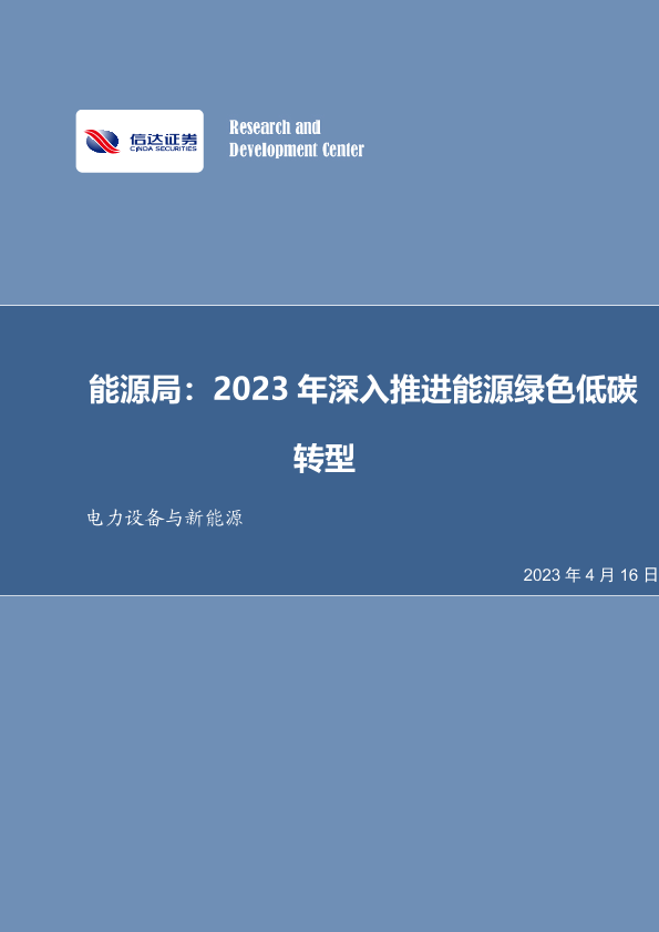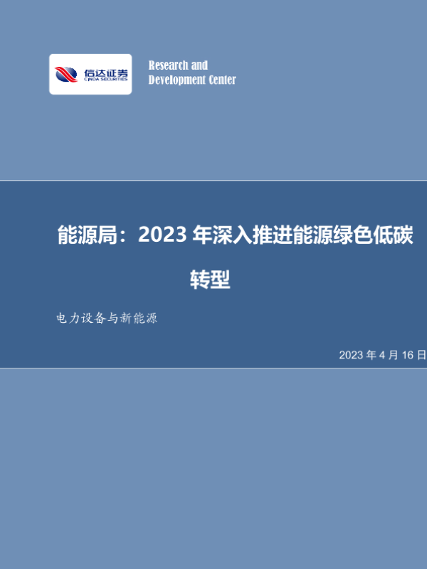 【信达证券】【20230416】20230416-信达证券-电力设备与新能源行业周报:能源局:2023年深入推进能源绿色低碳转型-13页