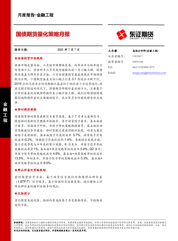 【东证期货】【20210707】国债期货量化策略月报-17页