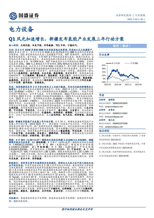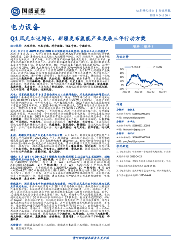 【国盛证券】【20230430】20230430-国盛证券-电力设备行业周报:Q1风光加速增长,新疆发布氢能产业发展三年行动方案-20页
