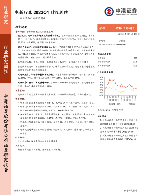 【申港证券】【20230503】电新行业2023Q1财报总结-12页