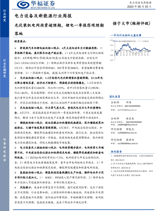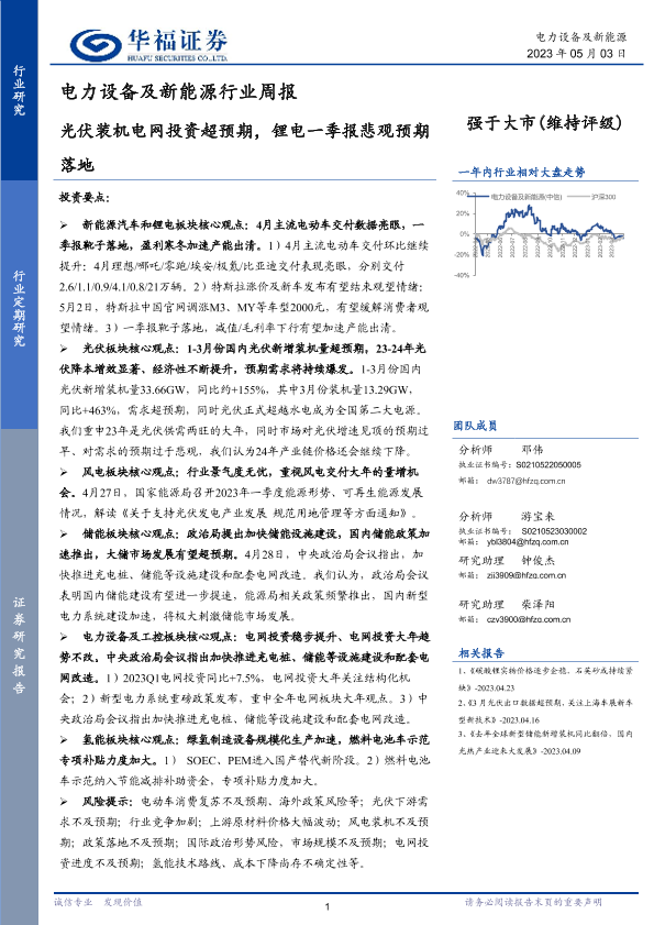 【华福证券】【20230503】电力设备及新能源行业周报:光伏装机电网投资超预期,锂电一季报悲观预期落地-14页