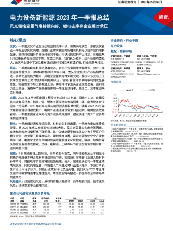 【国信证券】【20230506】电力设备新能源2023年一季报总结:风光储输变景气度持续向好,锂电去库存企业相对承压-19页