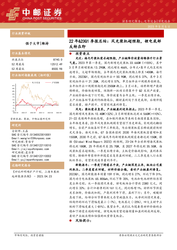 【中邮证券】【20230505】22年&23Q1季报总结:风光装机超预期,锂电底部反转在即-35页