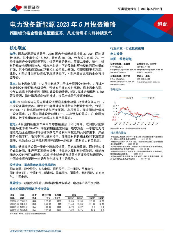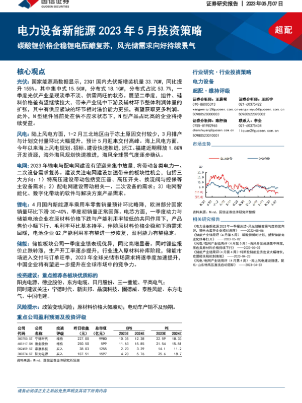 【国信证券】【20230507】电力设备新能源2023年5月投资策略:碳酸锂价格企稳锂电酝酿复苏,风光储需求向好持续景气-33页