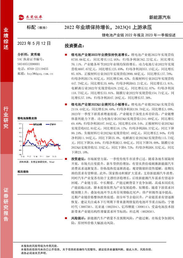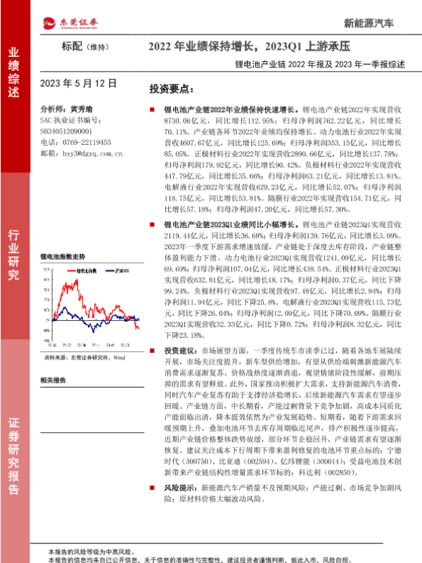 【东莞证券】【20230512】锂电池产业链2022年报及2023年一季报综述:2022年业绩保持增长,2023Q1上游承压-30页