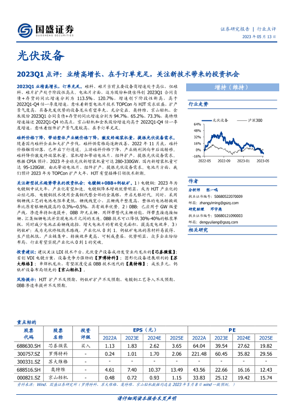 【国盛证券】【20230513】光伏设备2023Q1点评:业绩高增长、在手订单充足,关注新技术带来的投资机会-20页