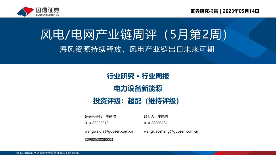 【国信证券】【20230514】风电/电网产业链周评(5月第2周):海风资源持续释放,风电产业链出口未来可期-24页