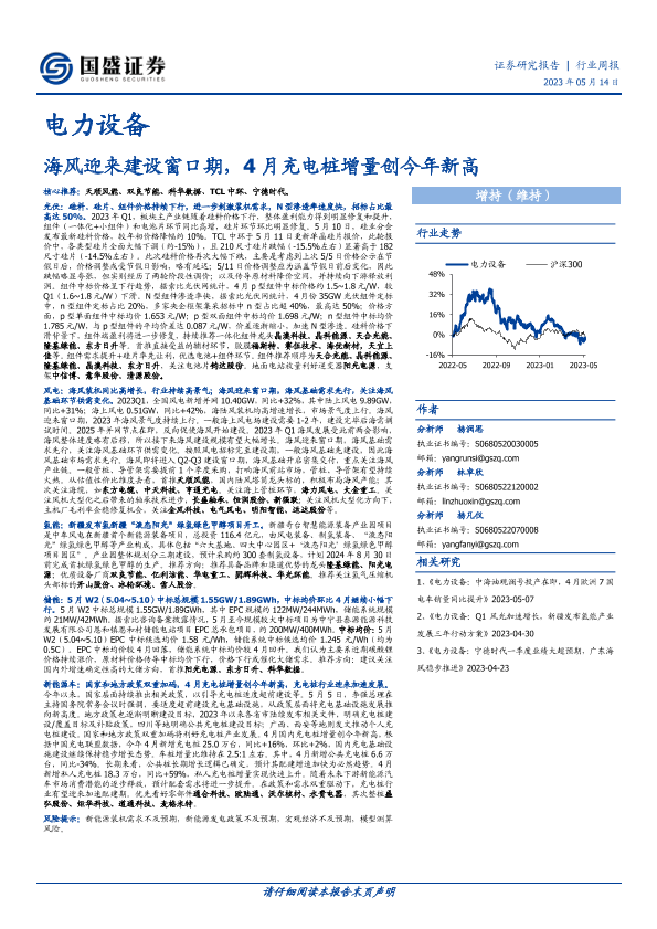 【国盛证券】【20230514】电力设备行业周报:海风迎来建设窗口期,4月充电桩增量创今年新高-21页