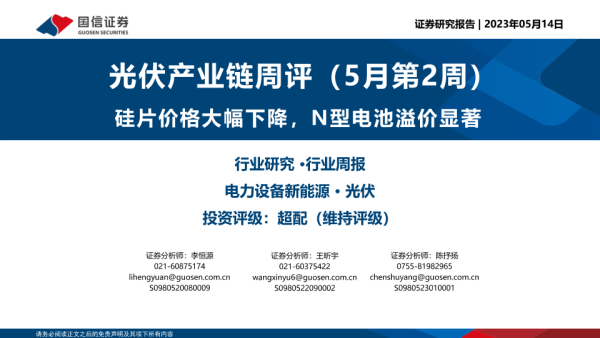 【国信证券】【20230514】光伏产业链周评(5月第2周):硅片价格大幅下降,N型电池溢价显著-13页
