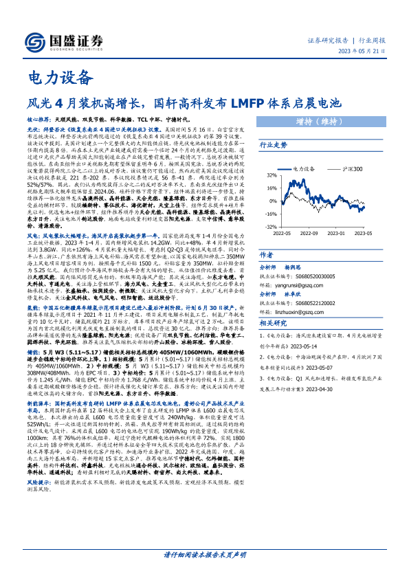 【国盛证券】【20230521】电力设备行业周报:风光4月装机高增长,国轩高科发布LMFP体系启晨电池-19页