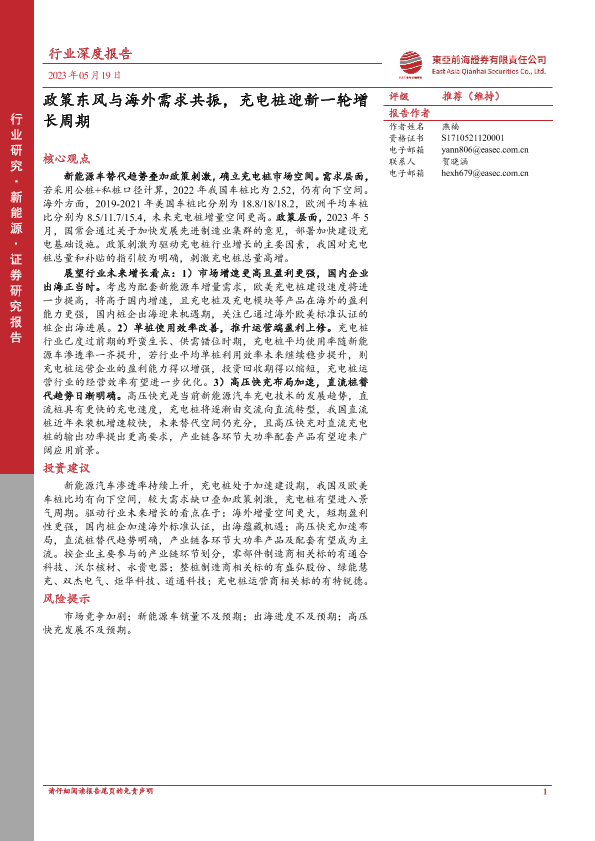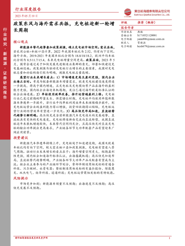 【东亚前海证券】【20230519】政策东风与海外需求共振,充电桩迎新一轮增长周期-30页