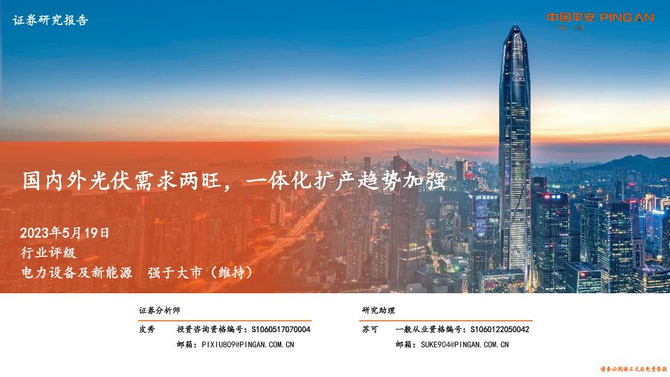 【平安证券】【20230519】电力设备及新能源:国内外光伏需求两旺,一体化扩产趋势加强-53页