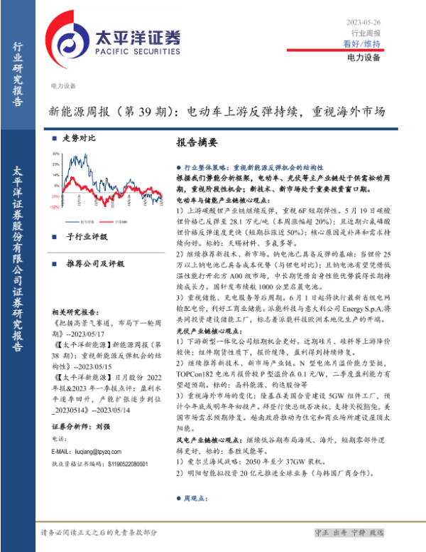 【太平洋证券】【20230526】20230526-太平洋-新能源周报(第39期):电动车上游反弹持续,重视海外市场-36页