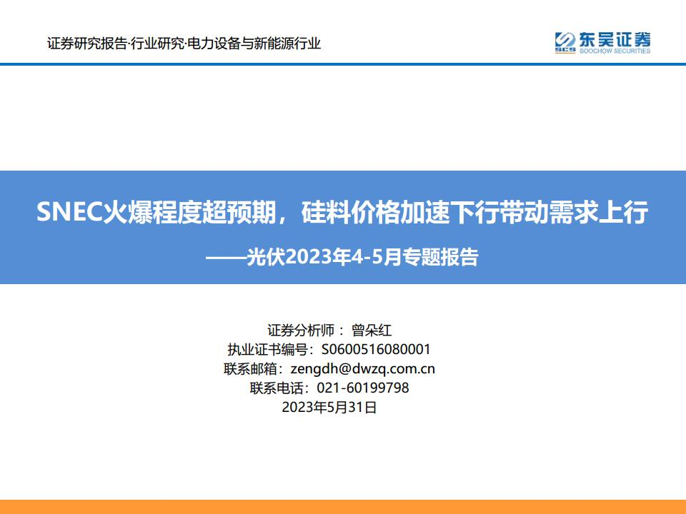 【东吴证券】【20230531】光伏2023年4-5月专题报告:SNEC火爆程度超预期,硅料价格加速下行带动需求上行-64页
