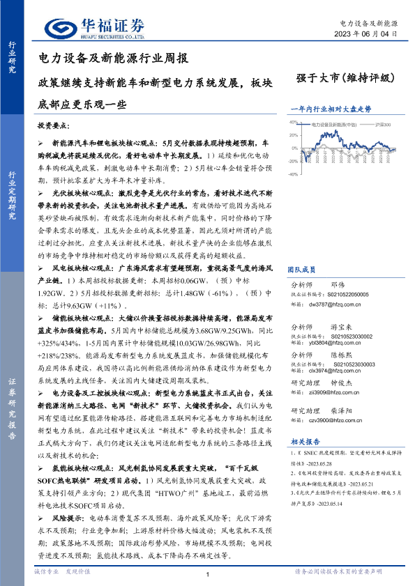 【华福证券】【20230604】电力设备及新能源行业周报:政策继续支持新能车和新型电力系统发展,板块底部应更乐观一些-14页