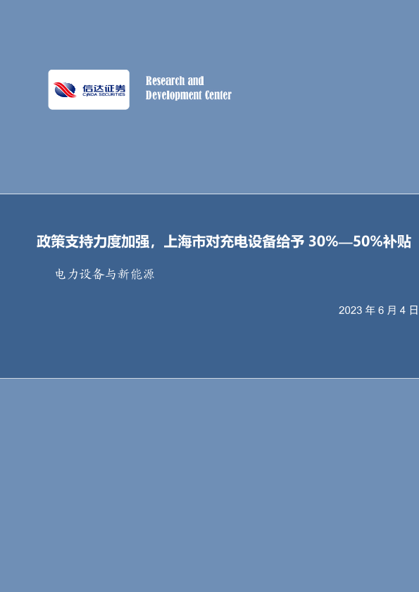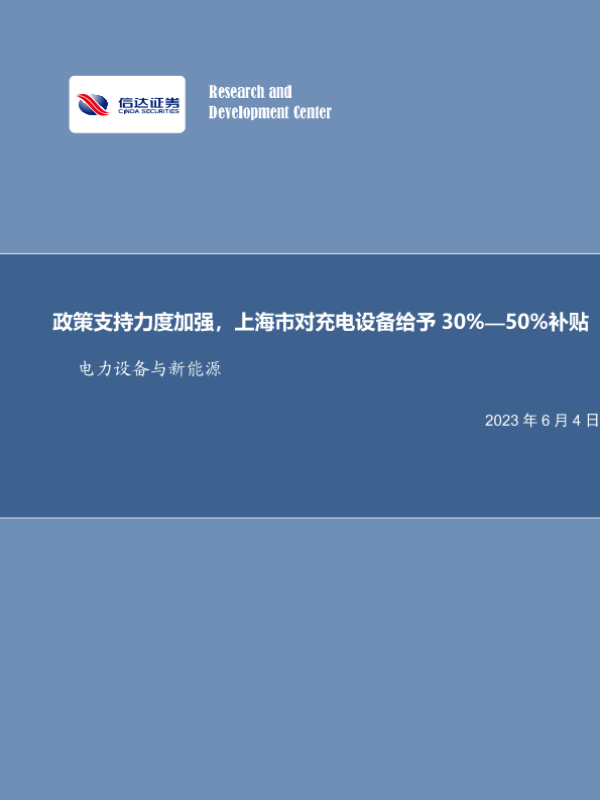 【信达证券】【20230604】电力设备与新能源行业周报:政策支持力度加强,上海市对充电设备给予30%—50%补贴-12页